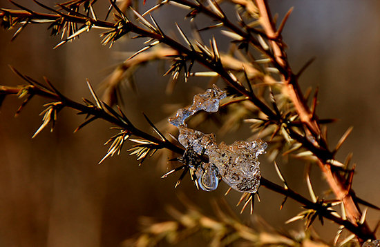 Ein kleines Rinnsal, zu Eis erstarrt.