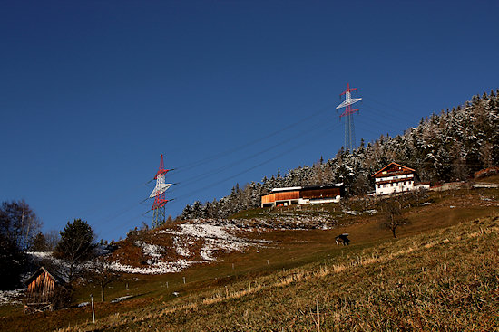 Die bereits angesprochenen Hochspannungsleitungen verlaufen auch an Bergbauernhöfen vorbei.