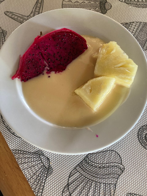 Annanas und Gebäck und wechselnden Süßspeisen. Für diejenigen, die nun gar