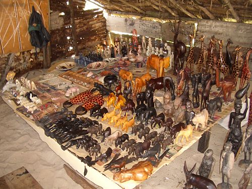 An jeder Ecke und von jedem werden handwerkliche Kunst und auch Kitsch in allen Variationen, Größen und Preislagen feilgeboten. Feilschen ist Pflicht, bietet doch jeder Anfangspreis mindestens 50% Luft. Meistens mehr. Beispiel: Wir haben uns eine Brotschale (Flechtarbeit) angeschaut. Qualität sehr gut, Einstandspreis 3.500 Kenianische Schilling. Eigentlich wollen wir gar nicht kaufen und waren daher in einer sehr guten Verhandlungsposition. Endpreis waren 600 Schilling. Krassestes Beispiel: Ein Armband, angeblich aus Elefantenschwanzhaar (Was nach meinen Informationen aber gar nicht mehr verkauft werden darf und daher ganz dreist aus Kunststoff ist) und von einer Massai-Folkloretruppe im Hotel angeboten für 160 (!) US$. Dann doch nicht gekauft für den letzten Preis von 10 $.