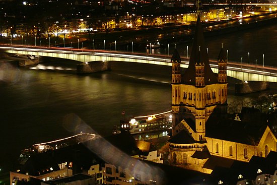 Vom Zugang zur Hohenzollernbrücke ein Blick auf Groß St. Martin.