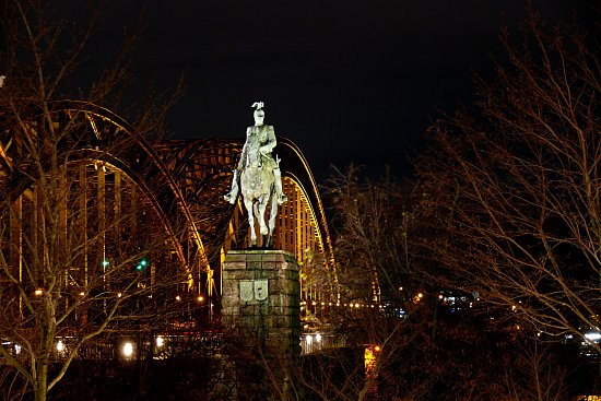 Wieder unten: Blick auf das Reiterdenkmal am Platz vor der Philharmonie und dem Museum Ludwig.