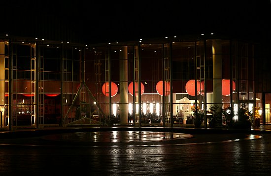 Foyer oder Bar, könnte zur Philharmonie gehören und ist vom Platz aus zu sehen.