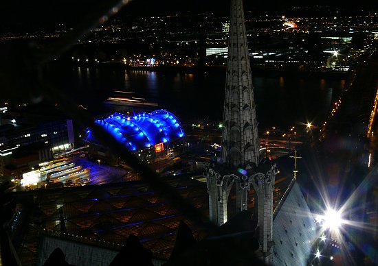 Von dort aus hat man auch einen schönen Blick auf die Dachkonstruktion des Museums Ludwig sowie die große Freitreppe, die zum Rhein hinab führt.