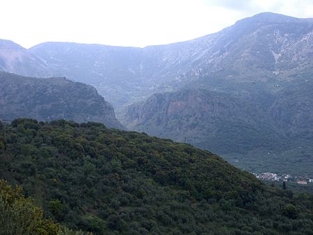 Blickt man zur anderen Seite, hat man einen wunderschönen Ausblick auf die fruchtbare Ebene, die in früheren Zeiten mit windgetriebenen Wasserpumpen übersäht gewesen ist. Heute locken nur noch einige Tavernen mit solchen Wasserpumpen Kundschaft. Die zur Ebene gehörigen Ortschaften befinden sich allesamt am Rand, um kein kostbares Ackerland zu verschwenden. Dementsprechend führt die Autostraße im Kreis ringsherum.