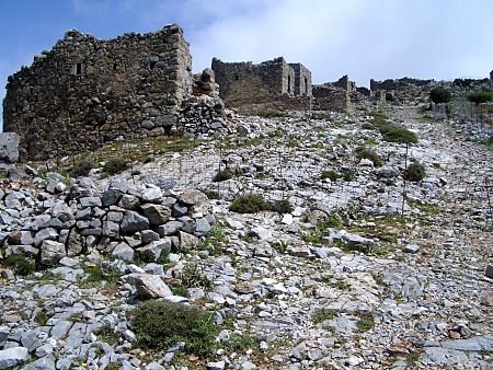 Ebenfalls auf dem Weg liegt eines der bedeutensten Klöster der Insel, Moni Panagia Kera Kardiotissa. Den Innenraum mit teilweise erhaltenen Wandmalereien aus spätbyzantinischer Zeit darf man leider nicht fotografieren.