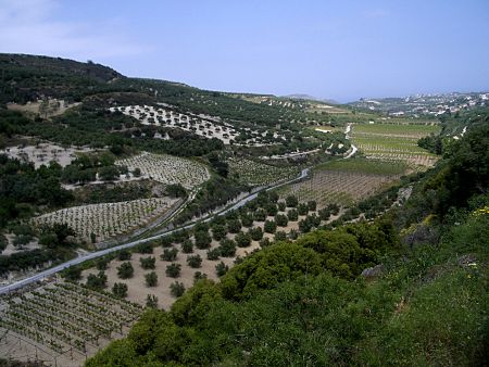 Auf dem Weg in den Süden der Insel trifft man nicht mehr nur den Olivenbaum an sondern durchquert ein großes Weinanbaugebiet in der Gegend um Archanes und Vathipetro.