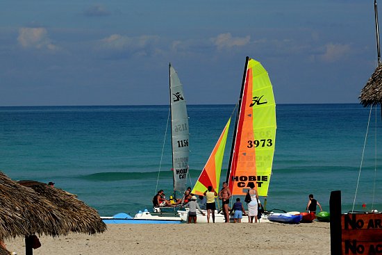 Und natürlich ebenfalls ein Blick in die entgegengesetzte Richtung, also auf das Ende der Landzunge. Da der Strand aber insgesamt 19 km lang ist, ist dort hinten noch lange nicht das Ende. Und man kann völlig ungestört am Strand entlang laufen, ohne ständig angequatscht zu werden oder gar um seine Sicherheit fürchten zu müssen. Wir haben uns sowieso nie unsicher gefühlt, auch nicht im Landesinneren. Dazu kommt, dass hier in Varadero die Strände in touristische Zonen eingeteilt sind, in die man so ohne weiteres wahrscheinlich als Einheimischer gar nicht herein kann.