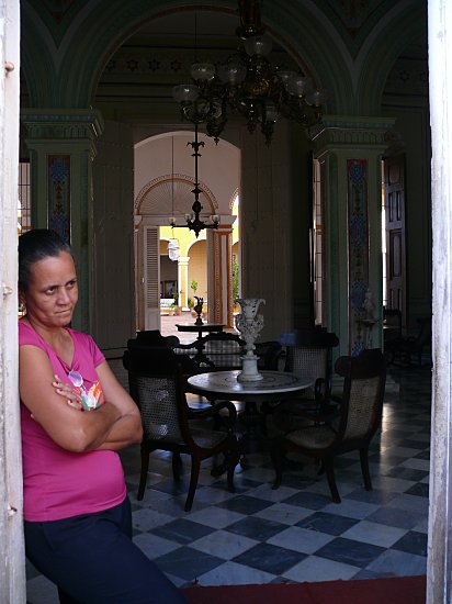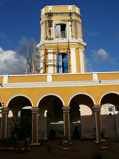 Den besten Überblick über die Stadt hat man vom Turm des Stadtmuseums aus, dessen Eingang man hier sieht. Obwohl Kultur und Museen im sozialistischen Kuba kostenlos sind, fehlt das Aufsichtspersonal natürlich nicht. Aber manchmal sieht es etwas gelangweilt aus.