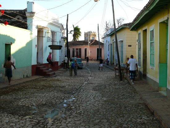 Typisch für das Straßenbild Trinidads sind die mit runden Steinen gepflasterten Straßen, die zur Straßenmitte hin abfallen. Ebenfalls charakteristisch sind die eisenvergitterten Fenster, hinter denen sich das Leben in den Wohnungen fast auf der Straße abspielt.