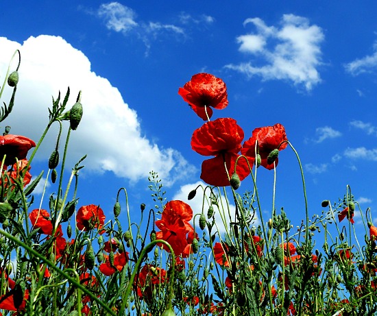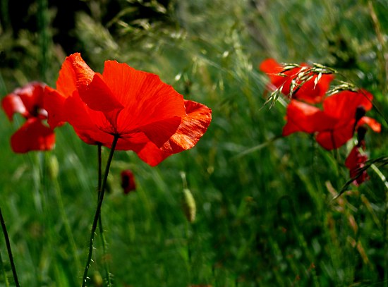 Häufiger Begleiter von Getreidefeldern ist Klatschmohn. Das er allerdings so massenhaft auftritt wie hier zu sehen, ist eher selten.