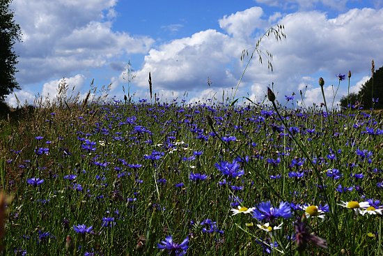 Kaum noch zu finden sind Felder, in denen wilde Kornblumen blühen. In der Eifel hatte ich jetzt das Glück.