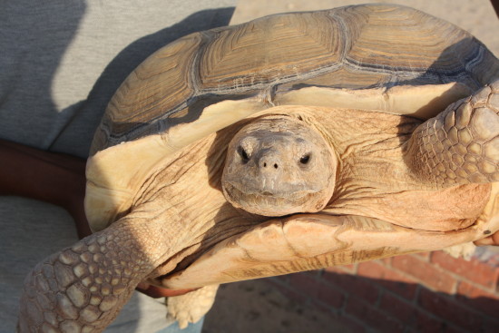 Eine von noch drei Landschildkröten,