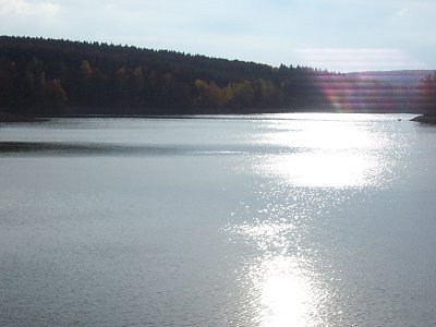 Die Steinbachtalsperre im Gegenlicht. Sobald die Sonne nicht mehr ganz so hell scheint, tritt der weiter oben beschriebene Gegenlichtfehler nicht mehr auf. |