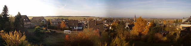 Dann habe ich die Panoramafunktion ausprobiert. Vier Fotos von unserem Balkon aus gemacht und dann mit der beiliegenden Software ACDSee zusammengebastelt. Obwohl das eigentlich unfair ausgedrückt ist. Man muss nämlich lediglich die Fotos angeben und den Rest erledigt das Programm. Das geht prima und ohne Handjustierung. Hier das Ergebnis: