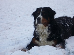 Apropos Bildbearbeitung: Wenn man auf die Funktionen Helligkeit und Kontrast verzichtet und statt dessen die Histogramm-Funktionen (auch Kurven genannt) geschickt einsetzt, kann man auch aus schwierigen Bildern etwas zaubern. Daher zum Abschluss noch mal ein besonders schwieriges Motiv: Überwiegend schwarzer Hund im Schnee, aufgenommen mit dem Snow and Surf Programm: