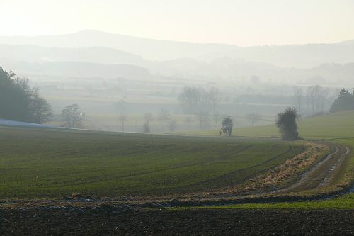 Der Dunst deckt die Landschaft mit einem zarten, düsteren Schleier zu, sobald man sich wieder umdreht.