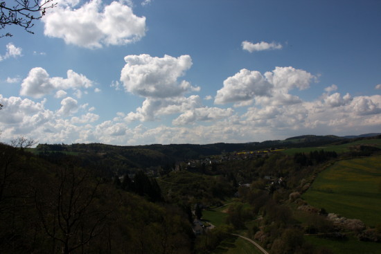 Von dort oben kann man mit einem Fernglas bei guter Sicht einen Blick auf die Nürburg erhaschen.