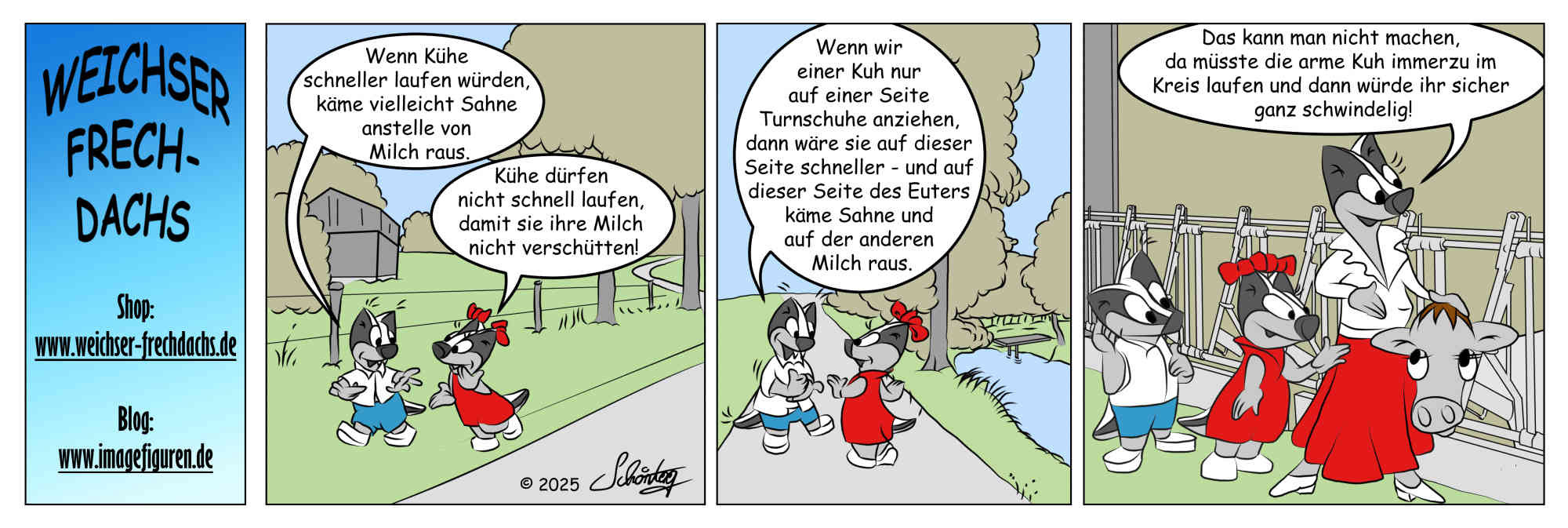 Der Mann von der Kuh ist der Ochse. Er sieht genauso aus wie die Kuh, nur hängt unten keine Milch dran. Darum ist der Ochse auch kein Säugetier. Der Ochse ist ein ganz böses Schimpfwort, das nur mein Vater sagen darf.